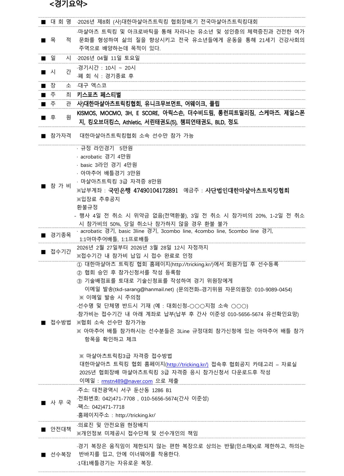 대전광역시 서구 둔산동 1286번지 사단법인 대한마샬아츠트릭킹협회 / 전화 042.471.7708 팩스 042.471.7718